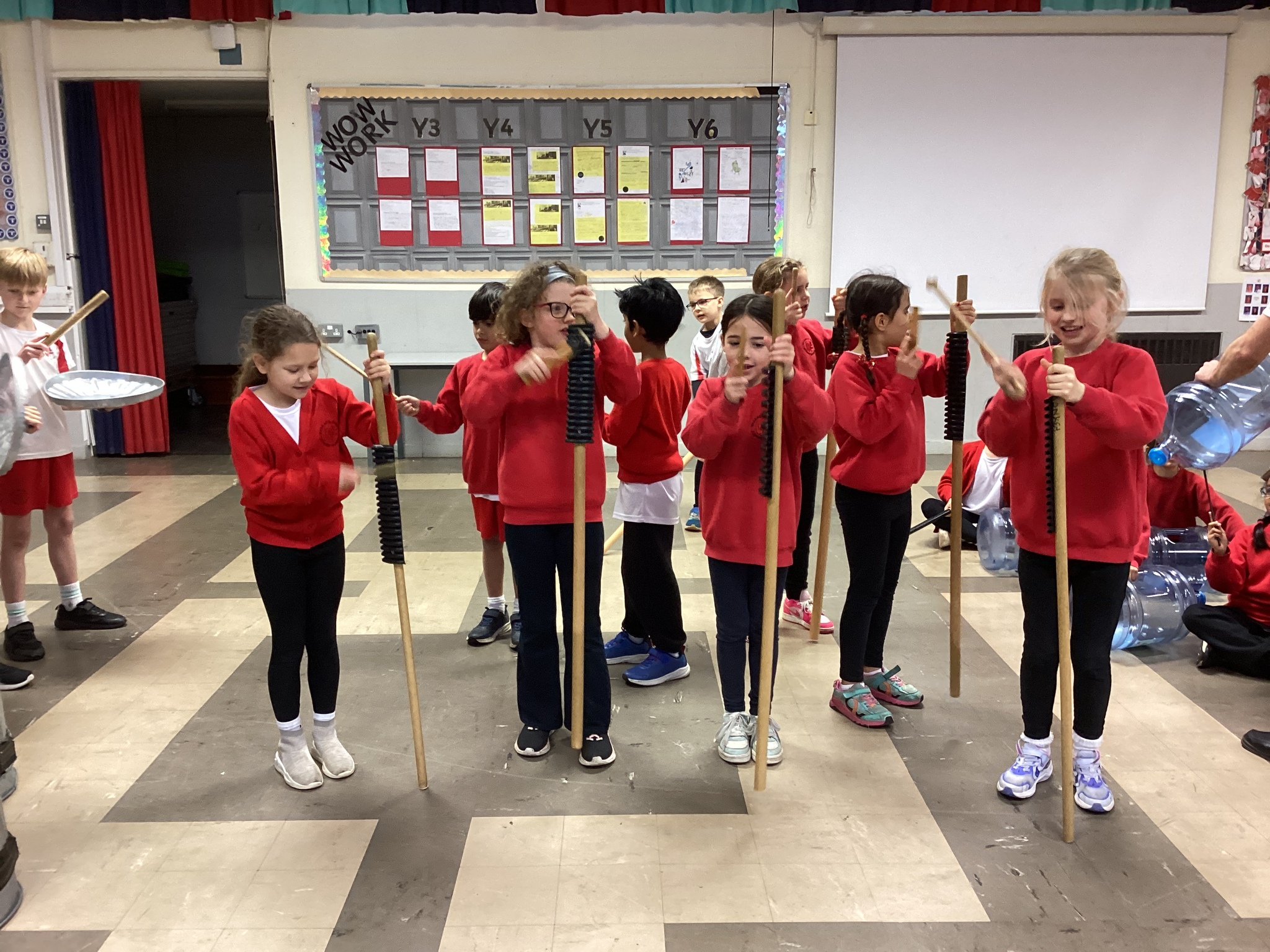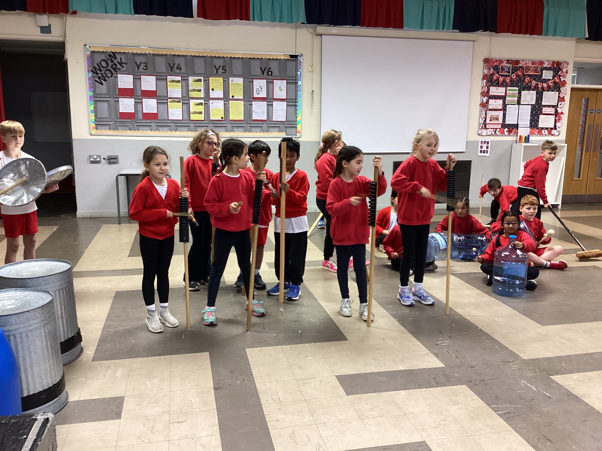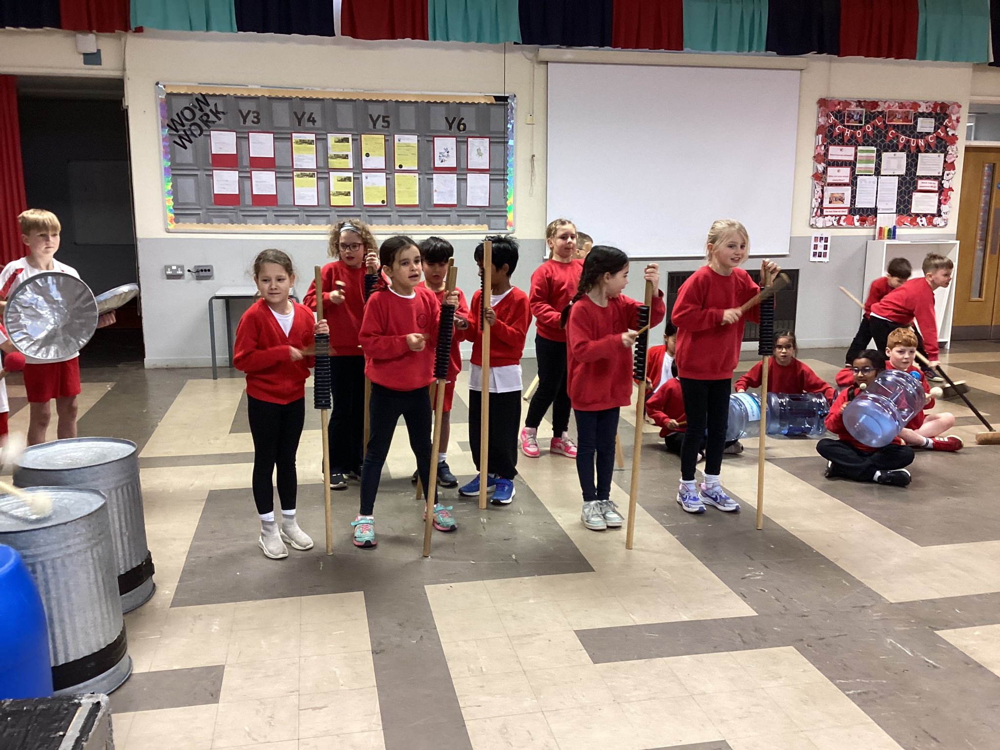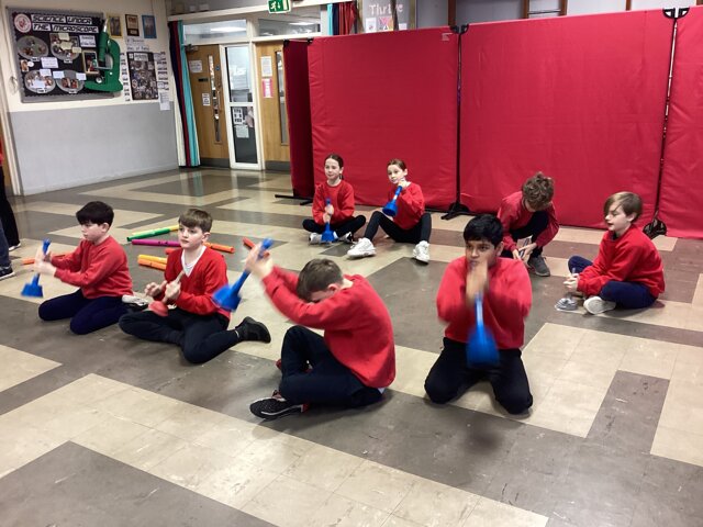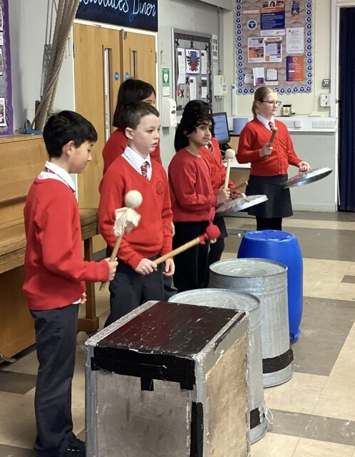 I think my favourite piece of junk was the large water bottle - there were so many different ways to create different effects! The children also had to think carefully about how to structure their rhythms as a group in order to build their final composition.