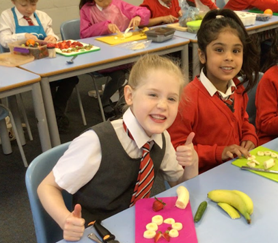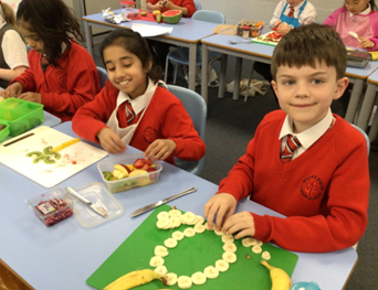 At Wallace Fields Junior School we follow the ‘Design, Make, Evaluate’ approach to the teaching of DT, as outlined in the National Curriculum Programmes of Study document. The technical skills which we teach encompass the following areas: Construction, Mechanisms, Textiles and Food and Nutrition. We feel that the teaching of Food and Nutrition is a great importance and holds great relevance in current times. For this reason, children will study a Food and Nutrition unit every year, in which children are taught the skills of both hygiene and cooking/ preparing food.